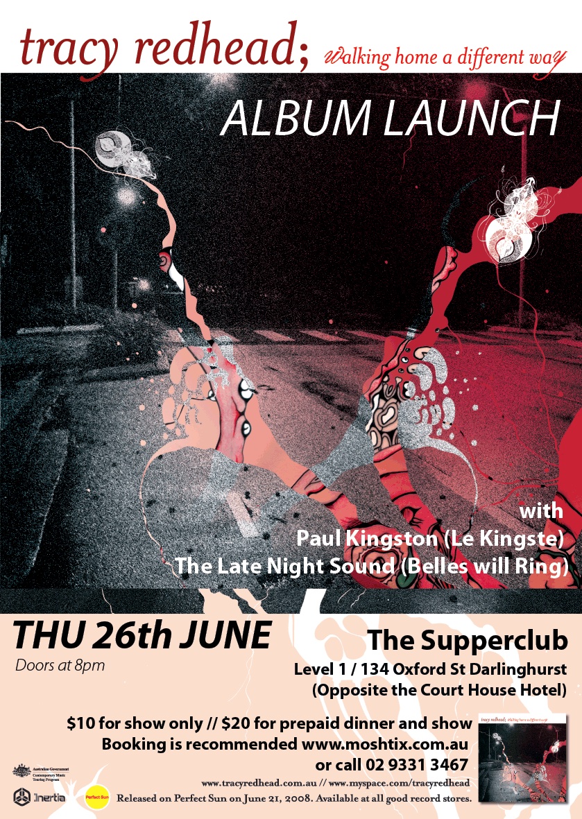 ‘Walking Home A Different Way’ is released by label Perfect Sun owned by UK ex-pat Richard Roberts who signed PJ Harvey and Stereolab. “This is one of those records that captures the essence of what a great modern, pop record should be. It’s easily accessible without compromising Tracy’s vision or integrity. I’m incredibly proud to be involved in the making of it.” Distribution is nationally via Inertia.